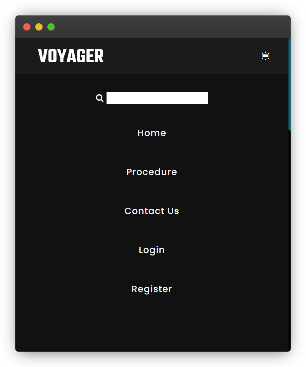 J'ai mis le texte "Voyager" en uppercase et j'ai également fait en sorte que l'icon du menu ne soit plus apparent lorsque le responsive menu est ouvert.