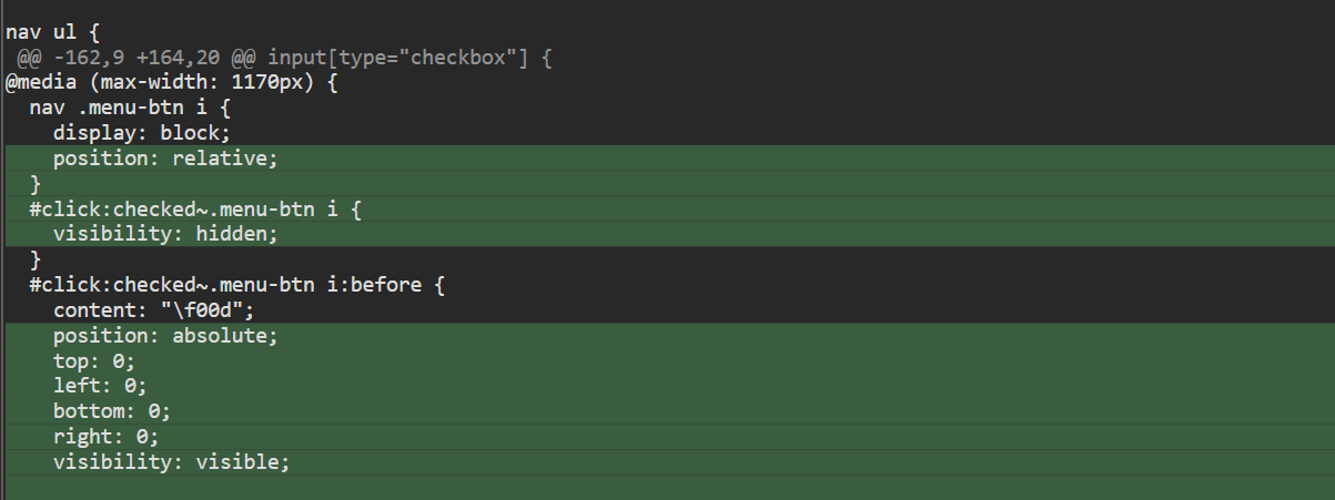 Voici ci-dessous en vert les modifications apportées au style du menu.